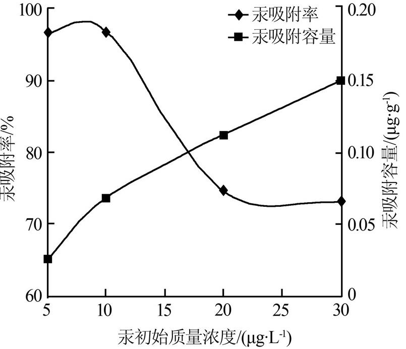 圖 5 汞初始濃度對剩余污泥吸附汞的影響