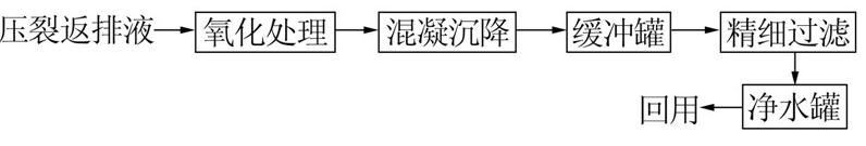 首先在酸性條件下向壓裂返排液中投加氧化復配劑進行降黏殺菌,出水采用石灰乳調節(jié)pH=7.0左右,然后依次加入PAC等混凝劑、助凝劑,再依次進行絮凝沉降和精細過濾。處理后出水回用于配制壓裂液或者回注。