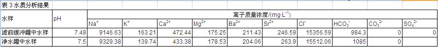 參照《油田水分析方法》(SY/T 5523-2006)對緩沖罐和凈水罐中的水取樣檢驗,結果見表 3。