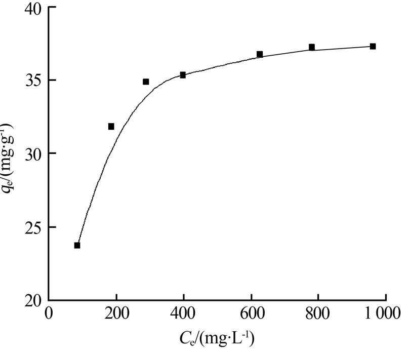 為了進一步探究吸附特性,對焦化廢水原水稀釋,選取揮發酚的7個不同初始濃度,在303 K恒溫條件下進行批次平衡吸附實驗,各初始濃度下的表觀平衡吸附量見圖 2。