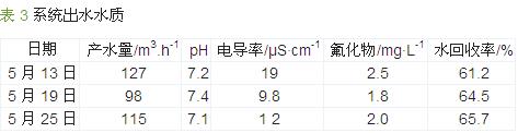 此系統運行1 a,運行狀況良好。系統產水量為90~130 m3/h,水回收率約為60%,脫鹽率達到98%以上。系統運行水質情況見表 3。