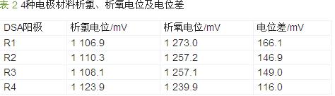 2.1 DSA陽極析氯、析氧電位測定結果
