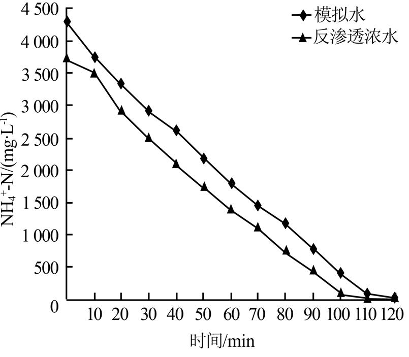 由水質分析數據可見,試驗水樣含鹽量很高,硬度、硫酸根等含量很低,主要離子成分是Na+和Cl-,氨氮含量很高。