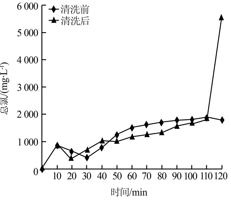圖 6 極板清洗前后總氯變化曲線