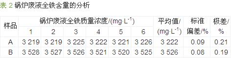 為確保安全,工業鍋爐使用一段時間后必須經過化學清洗才能繼續投入使用。在酸洗過程中,全鐵含量是反映酸洗效果的重要指標之一,準確測定酸洗廢液中Fe3+和Fe2+含量是化學清洗效果的重要保證。