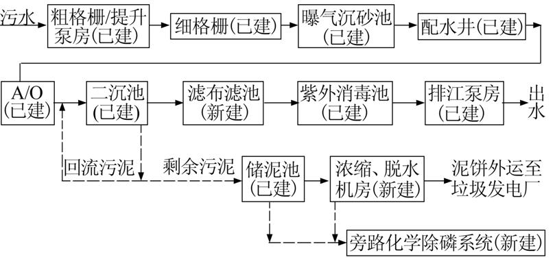 晉江市仙石污水處理廠改造工程充分利用已建工程各處理單元,不對已建工程的構筑物進行較大改造,即保留初級處理以及二級處理單元,增設深度處理單元及旁路除磷單元,并對污泥處理系統進行升級。污水處理廠改造完成后,其尾水水質滿足《城鎮污水處理廠污染物排放標準》(GB 18918—2002)中一級A標準,緩減了泉州灣水體環境容量,具有較顯著的環境效益及社會效益。