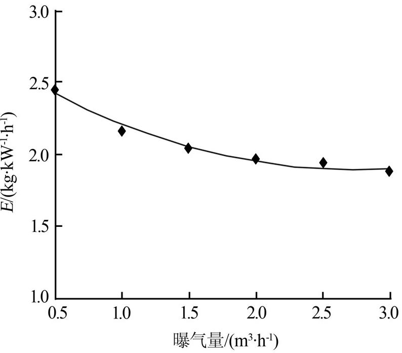 理論動力效率(E)隨曝氣量的變化情況見圖 3。