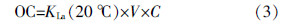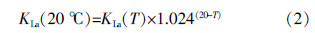 若測試溫度不在20 ℃,可采用式(2)對KLa進行修正: