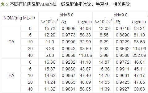 圖 2 HA對不同初始pH的AB9降解效果影響