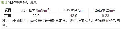 從污水水質來看,SAGD采油污水乳化現象嚴重,這不僅會增加處理難度,甚至會影響正常生產。為充分了解SAGD采油污水的乳化程度,對其乳化特性進行了分析,結果如表 2所示。