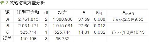 對正交試驗結果作進一步方差分析,見表 3。