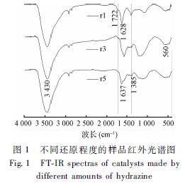 不同還原度的催化劑制備:在制備催化劑的過(guò)程中加入與氧化石墨(100mg)質(zhì)量比為x∶10的水合肼(x=0,1,3,5,7),分別制備出編號(hào)為r1、r2、r3、r4、r5的催化劑。
