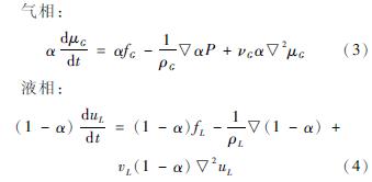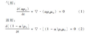式中:ρ是密度,t是時間,u是速度矢量,α為氣含率。