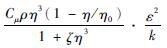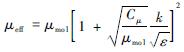 得到。方程(2~4)中的系數αT ,αk和αε分別為能量方程、k方程、ε方程的有效Prandtl數的倒數。它們由下式得到: