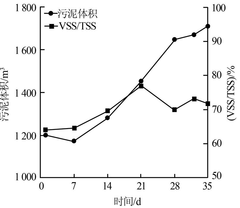 在調(diào)試過(guò)程中,對(duì)污泥量和污泥TSS、VSS進(jìn)行了檢測(cè),結(jié)果如圖 3所示。