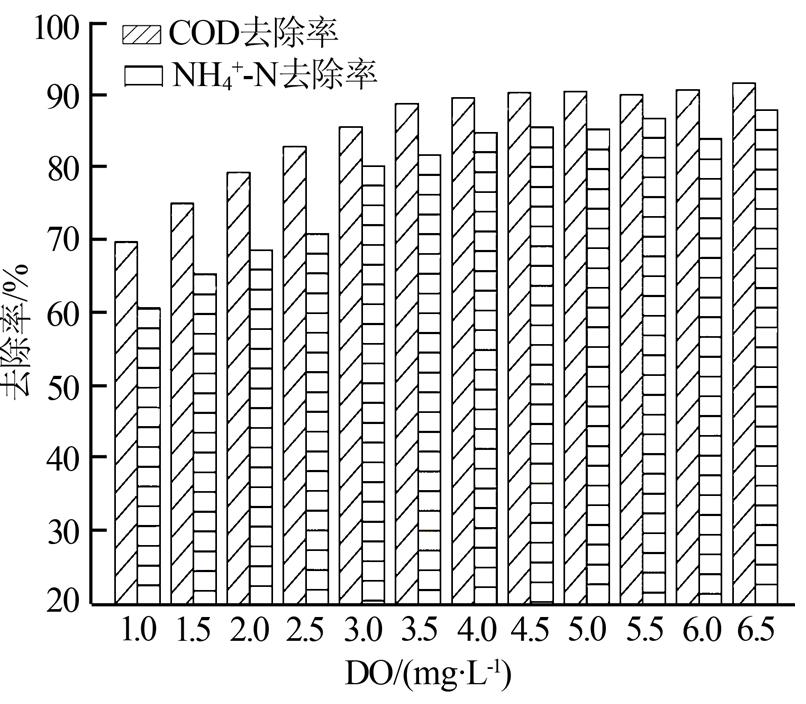 2.2.2 DO對生物膜反應(yīng)器去除COD和NH4+-N效果的影響