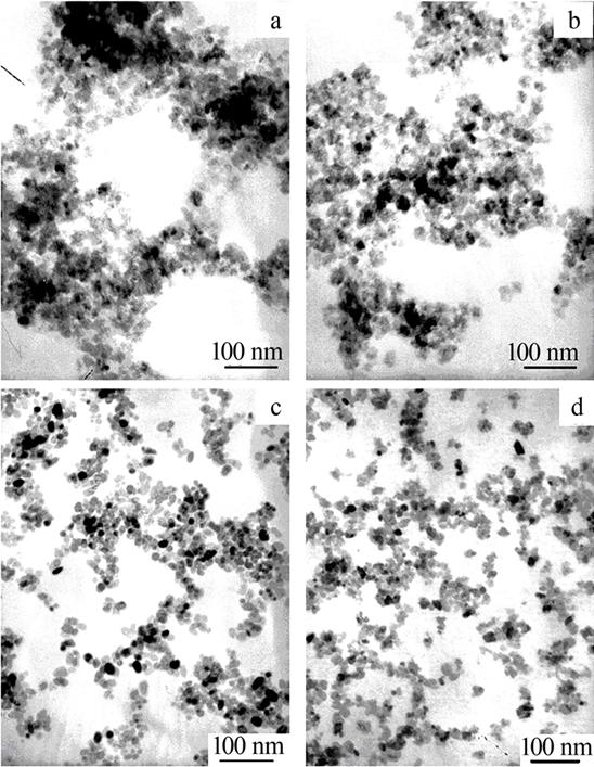 a—TiO2;b—Ce-TiO2;c—Si-TiO2;d—Ce0.010Si0.10TiO2。