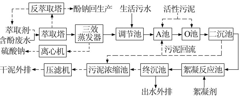 (1)采用絡(luò)合萃取+蒸發(fā)+A/O工藝處理癸二酸生產(chǎn)含酚廢水,運行實踐表明,該工藝技術(shù)成熟,處理效果穩(wěn)定。經(jīng)處理后,出水水質(zhì)達到《污水綜合排放標(biāo)準(zhǔn)》(GB 8978—1996)的一級排放標(biāo)準(zhǔn)。