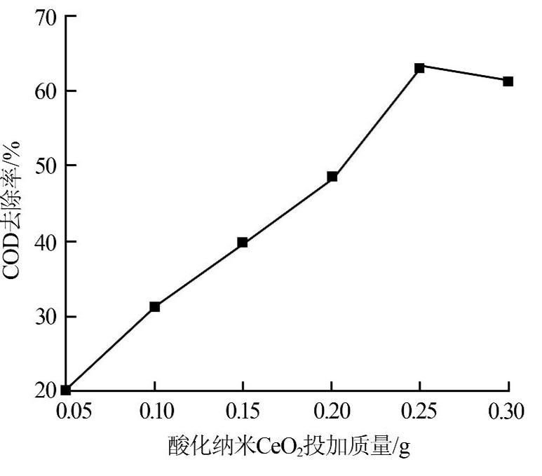 2.2 酸化納米CeO2投加量對COD去除率的影響