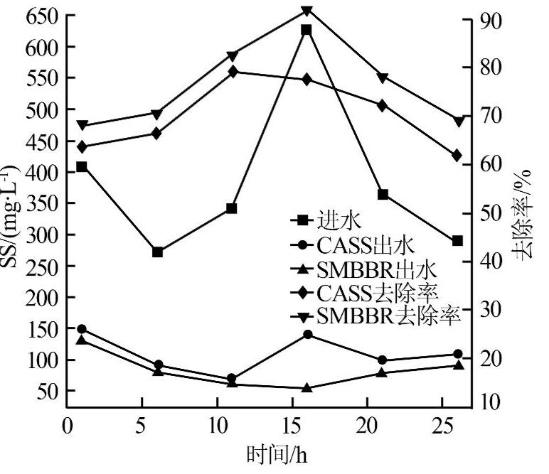 圖6 CASS和SMBBR工藝對SS的去除效果