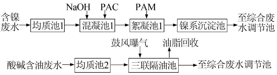 圖1 含鎳及酸堿含油廢水預(yù)處理流程