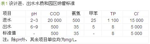 該公司一期工程含1條解草啶生產(chǎn)線和3個制劑車間,廢水量為30 m3/d,設計處理水量為90 m3/d。進、出水水質(zhì)及園區(qū)納管標準見表1。