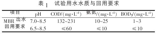 1.1 試驗(yàn)用水水質(zhì)及回用要求
