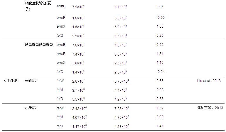 表2 豬場廢水生物處理過程中抗性基因的賦存特性