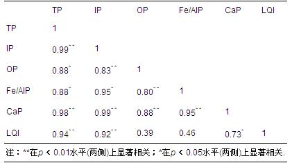 表2 沉積物樣品中有機質、總磷和各形態磷含量之間的相關關系