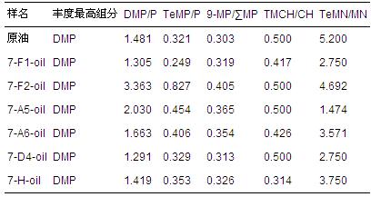 萘是含有兩個芳香環的稠環芳烴,研究的樣品中檢測出:甲基萘(MN)、二甲基萘(DMN)、三甲基萘(TMN)和四甲基萘(TeMN),以四甲基萘的相對豐度最高為特征.表 5顯示原油的TeMN/MN值為5.200,各菌劑的TeMN/MN值均比原油的小,表明幾種菌株對萘環上的甲基均有去甲基化效應,其中F2的去甲基化效應最弱,而A5對原油的去甲基化效應最強,這也與文獻報道假單胞菌物種具有降解各種石油化合物能力,包括脂族和芳族化合物相一致.