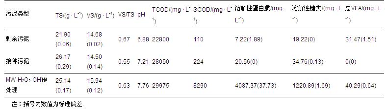 微波輻射技術(shù)作為熱處理方式之一,具有加熱均勻、升溫速度快、易于操控、節(jié)能高效等優(yōu)點(diǎn),逐步受到重視并應(yīng)用于污泥預(yù)處理.越來越多的研究表明,微波預(yù)處理能有效實(shí)現(xiàn)污泥溶胞,釋放出污泥中的EPS和微生物細(xì)胞中的蛋白質(zhì)、多糖等有機(jī)物.本課題組前期開展了大量常溫常壓下微波及其組合工藝污泥預(yù)處理研究,結(jié)果表明,優(yōu)化后的微波-過氧化氫-堿(以下簡(jiǎn)寫為MW-H2O2-OH)預(yù)處理工藝比微波其他組合工藝具有更好的污泥破壁溶胞效果,能夠使污泥釋放大量溶解性有機(jī)物.