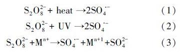 過硫酸鹽(PS)氧化作為一種新型的高級氧化技術近年來在環境領域逐漸受到研究人員的關注.在常溫條件下,PS是一種較為溫和的氧化劑,反應速率較慢.當PS受到外界條件如熱、微波、過渡金屬離子作用時容易被活化,產生氧化性更強的硫酸根自由基(SO· -4),其標準氧化還原電位E0=2.60 V,高于PS的E0=2.01 V.相應的反應原理如下: