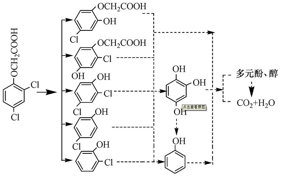圖8 2,4-D可能的降解途徑和中間產物分析結果