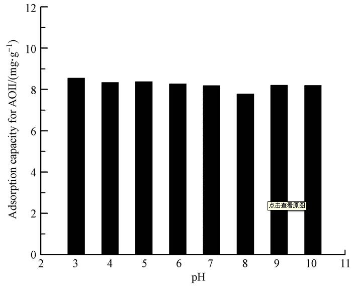 圖 3為pH值對MIPs吸附AOII的影響.可見,在AOII溶液pH為3~10之間時,MIPs對AOII的吸附性能基本不變,表明目標物與結(jié)合位點之間的親和性是吸附過程的主要驅(qū)動力.在后續(xù)實驗中,統(tǒng)一選擇pH為4的條件下進行.