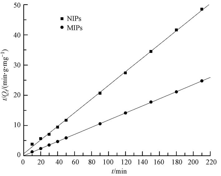 表2 MIPs和NIPs對AOII的擬一級動力學和擬二級動力學相關(guān)參數(shù)