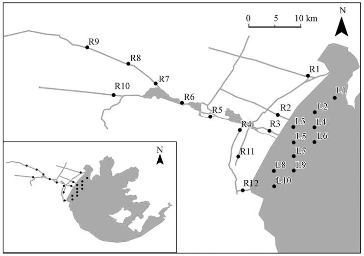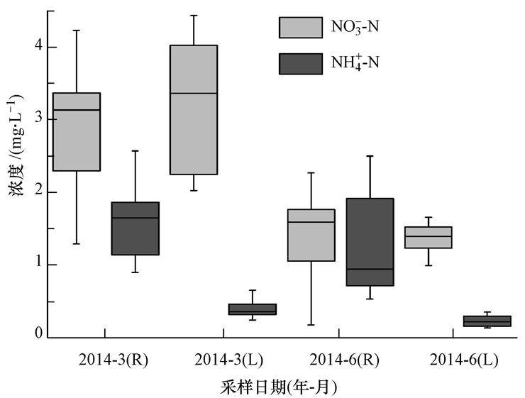 圖2 河湖無機氮濃度(圖中R為河水樣、L為湖水樣)