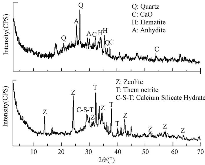 如圖 1所示,粉煤灰的主要成分為石英、CaO、赤鐵礦和石膏.合成沸石的主要成分為無名沸石,分子式為Na6[AlSiO4]6 · 4H2O,其次為碳酸鈉.