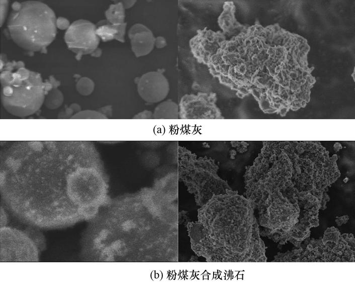 圖2 粉煤灰及其合成沸石掃描電鏡