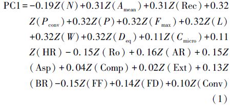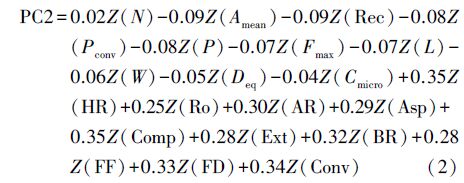PC2函數(shù)中,AR、Comp、BR等形態(tài)參數(shù)對PC2 的貢獻較大,因為形態(tài)參數(shù)在PC2上載荷較高,說明絮體的密實性、伸長性、規(guī)則性與形態(tài)因子的變化具有同步性;相反,Amean、Rec、Pcon等大小參數(shù)卻對PC2起相反作用,因為大小參數(shù)在PC2上載荷為負(fù),說明面積、周長、長寬等參數(shù)與形態(tài)因子呈負(fù)相關(guān)關(guān)系. 參數(shù)Cmicro在主成分3(PC3)上載荷較大,故歸納為濃度因子,提取原始變量信息的7.081%,其綜合評價函數(shù)為: