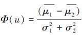 .由此,問題可轉(zhuǎn)化為找到使得目標(biāo)函數(shù)Φ(u)達到最大的投影向量,進而構(gòu)造出判別函數(shù).將兩個總體的樣本微觀參數(shù)觀測值分別帶入判別函數(shù)中求和,再分別除以各自的樣本個數(shù),求得兩組樣本的“重心”得分.