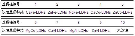 選用的改性試劑:三價金屬化合物為FeCl3、AlCl3、CoCl3,二價金屬化合物為CaCl2、MgCl2、ZnCl2;6種金屬化合物按兩兩組合的方式分別生成9種LDHs覆膜改性生物陶;|.每種改性基質分別置于一根人工濕地模擬基質柱中,其編號如表 1所示.