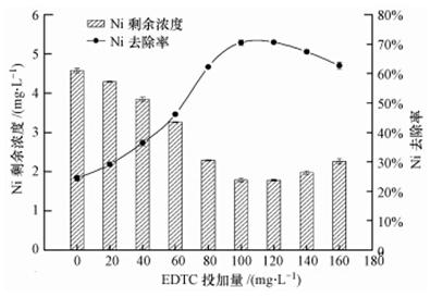 3.3 EDTC投加量對(duì)EDTC去除Ni效果的影響