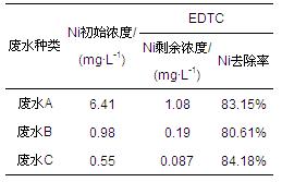 3.6 EDTC對(duì)不同含Ni電鍍廢水中Ni的去除效果