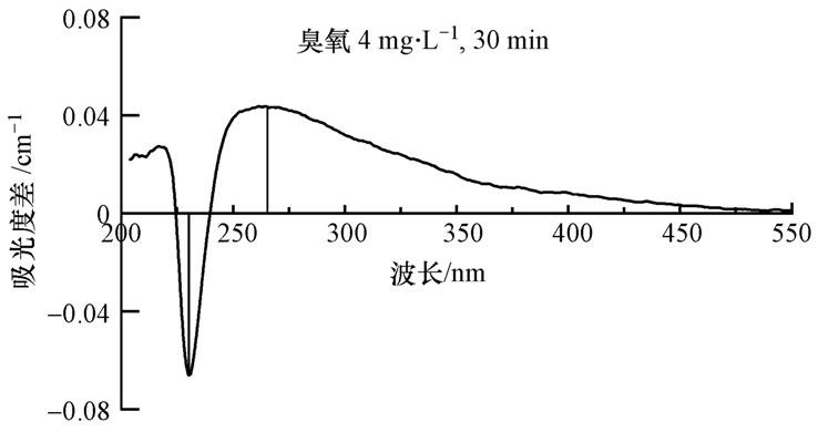 圖 3 二級(jí)出水B臭氧氧化后的紫外-可見(jiàn)吸收差光譜