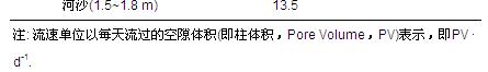 對法庫沸石(3~5 mm)進行了達西實驗,利用達西定律,計算出理想條件下該沸石的滲透系數(shù)為Kp =0.009 m · s-1=777.6 m · d-1,而場地含水層介質(zhì)Ka=80 m · d-1.可見,Kp/Ka基本約等于10,表明3~5 mm分選性較好的沸石顆粒完全能夠滿足PRB設(shè)計中對反應(yīng)介質(zhì)滲透系數(shù)的要求.