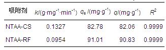 3)NTAA-CS和NTAA-RF對Cd2+的吸附在5 min內即可達到平衡;偽二階動力學模型可以對吸附動力學結果進行很好地擬合(R2=0.9999),吸附屬于吸熱化學反應過程.