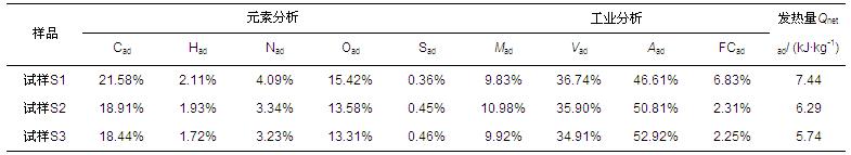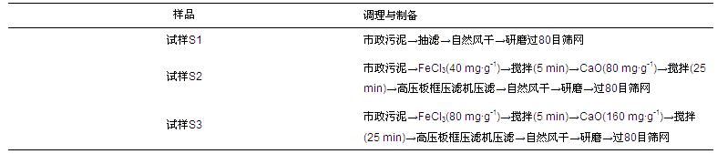 試樣為取自廣州某大型城市污水處理廠二沉池入口的污泥,3種試樣的調理與制備過程如表 1所示,樣品分析結果如表 2所示.