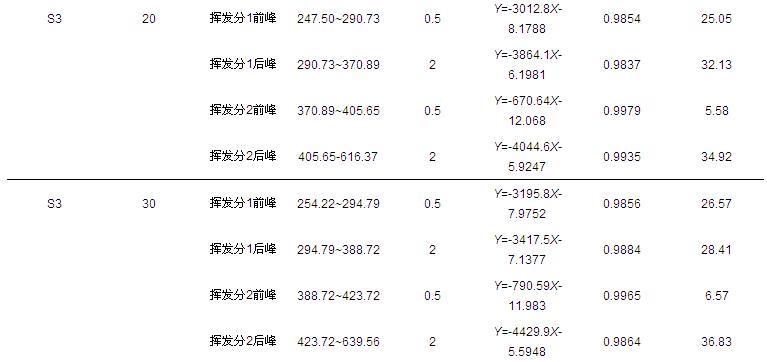 圖 3 試樣S3揮發分第1個失重峰前后動力學參數圖解