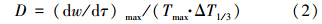 燃料燃燒過程中,揮發分的析出直接影響燃燒的著火溫度,揮發分特性指數D(陳建原等,1987)可對試樣燃燒揮發分析出情況進行描述,D越大,試樣的揮發析出特性越好,燃燒反應越易進行,越有利于污泥的燃燒,其公式如下: