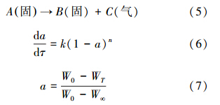 污泥失重過程中的熱解反應可以簡寫為式(5),忽略溫度對活化能的影響,根據質量作用定律可以得到試樣燃燒速率方程(6).